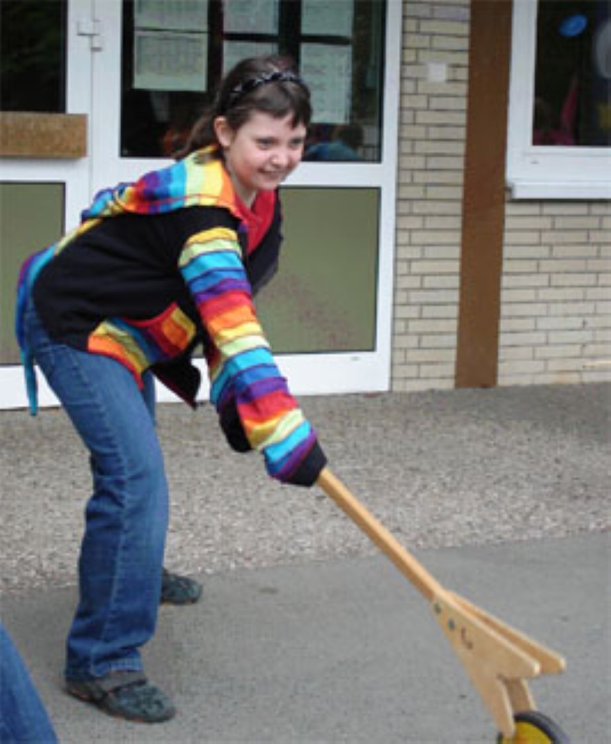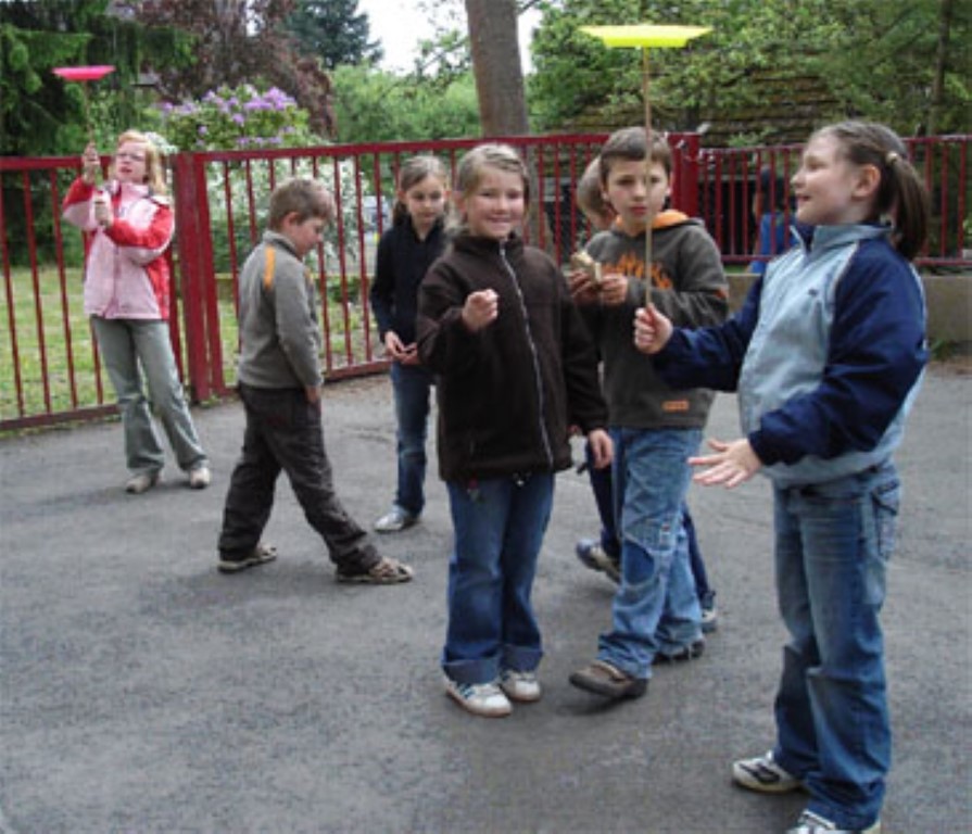 Mit einem „Spieleausweis“ können sich die Schüler/innen unterschiedliche Pausenspiele aus dem Pausespielverleih ausleihen. Der Pausenspielverleih wird vornehmlich von den Viertklässler/innen organisiert.